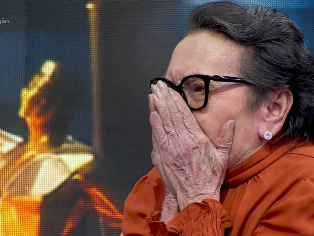 Tânia Maria, de 'O Agente Secreto', chora de emoção ao conhecer Tony Ramos no Domingão