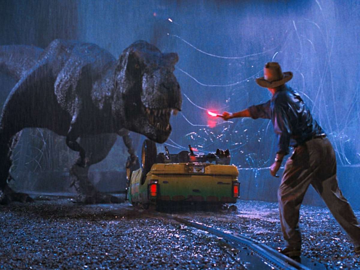 Assustadoramente, um Tiranossauro Rex se move através da chuva no escuro. Ele ruge, abre a boca e ameaça devorar tudo o que lhe atrapalha. É uma das imagens mais impressionantes e icônicas de Jurassic Park, o filme que levou o cinema de sucesso a um novo patamar há mais de 25 anos.