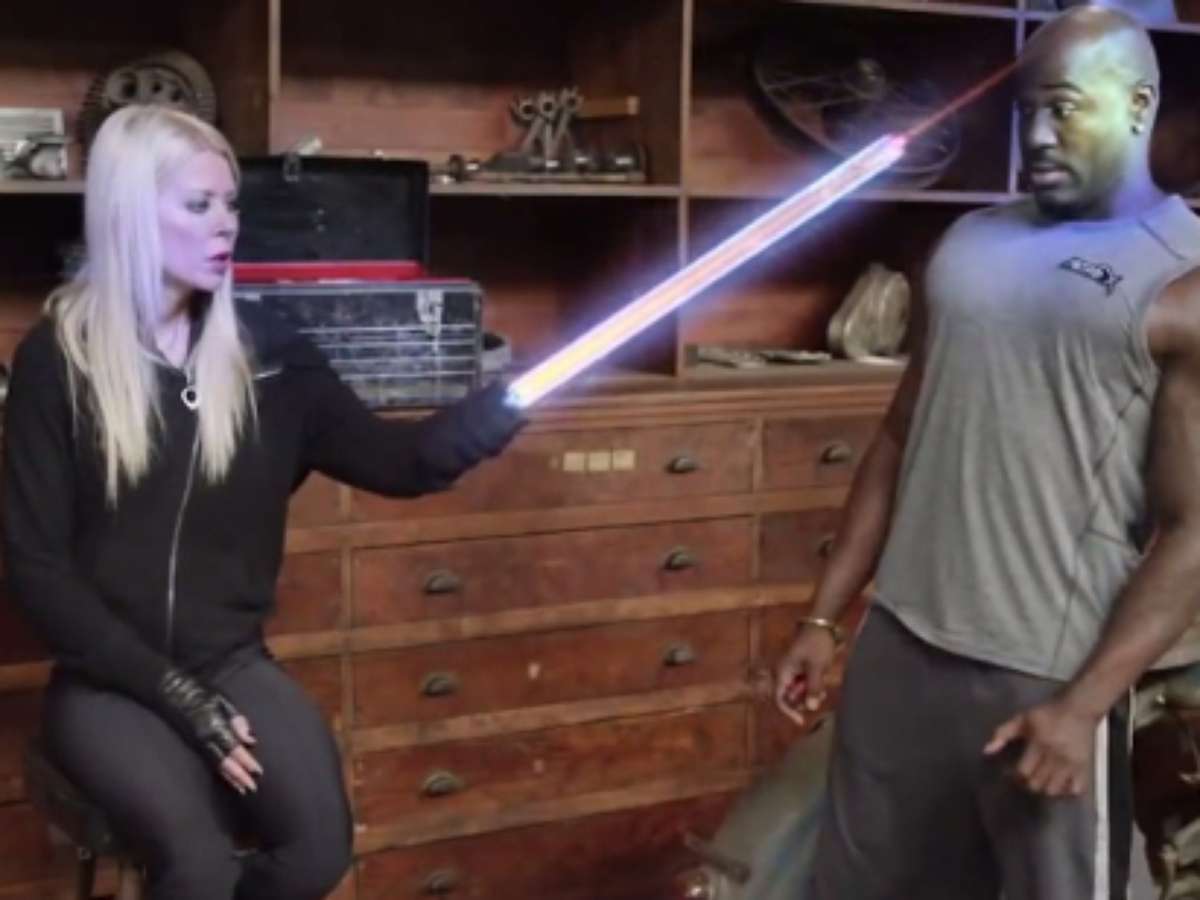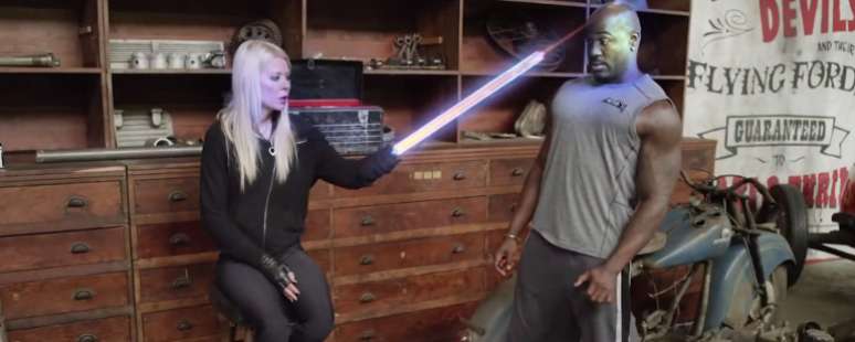 Quem achava que apenas o nome e o cartaz de Sharknado: The 4th Awakens iriam fazer menção à franquia Star Wars, se enganou. Além de apresentar incontáveis tubarões, o primeiro trailer do filme traz dois elementos centrais do mundo criado por George Lucas: o letreiro inicial e um sabre de luz - que aqui é um sabre "braço de luz" usado pela atriz Tara Reid.