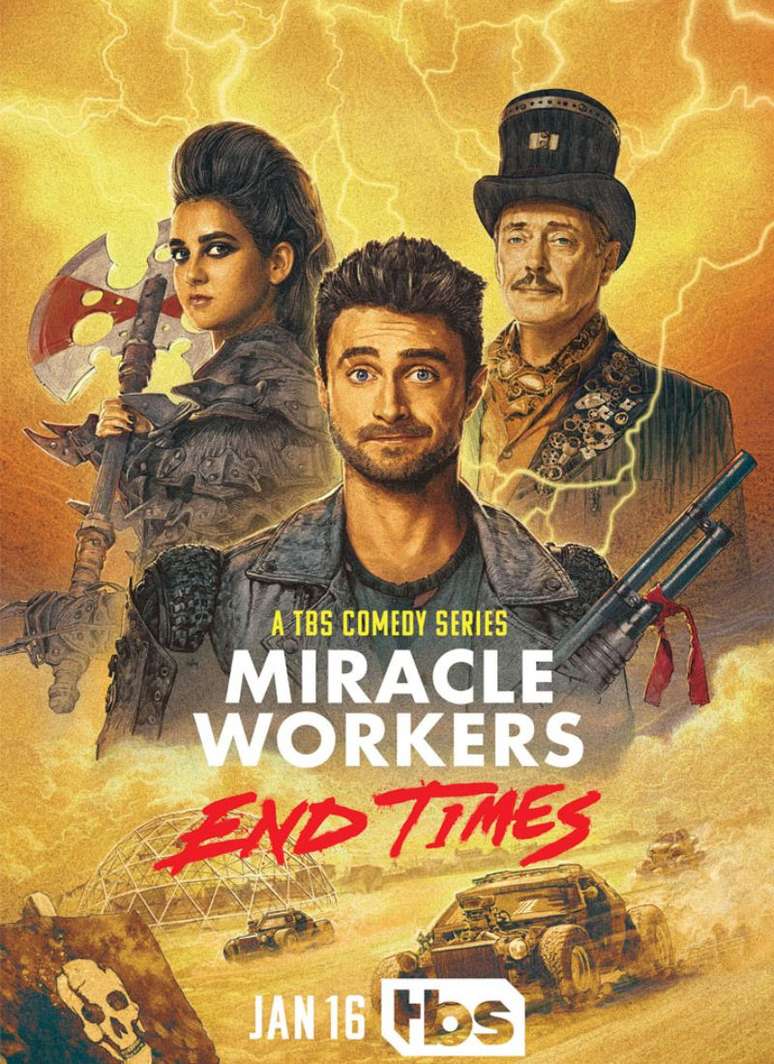 O canal pago americano TBS divulgou o trailer e a data de estreia da 4ª temporada de "Miracle Workers". Depois de episódios no Céu e no passado da Terra, a antologia de comédia estrelada por Daniel Radcliffe ("Harry Potter") vai ao futuro distópico, com novos episódios no mês de julho.