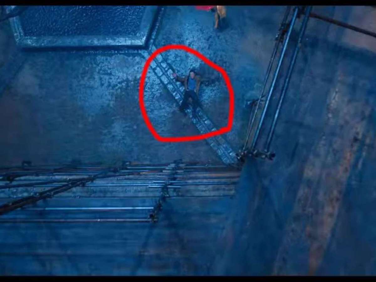 O cadáver da pessoa caída moveu-se como num passe de mágica... (ambas as cenas mostram ele morto logo após a queda, descartando a hipótese do personagem ter rastejado para lá enquanto ferido).