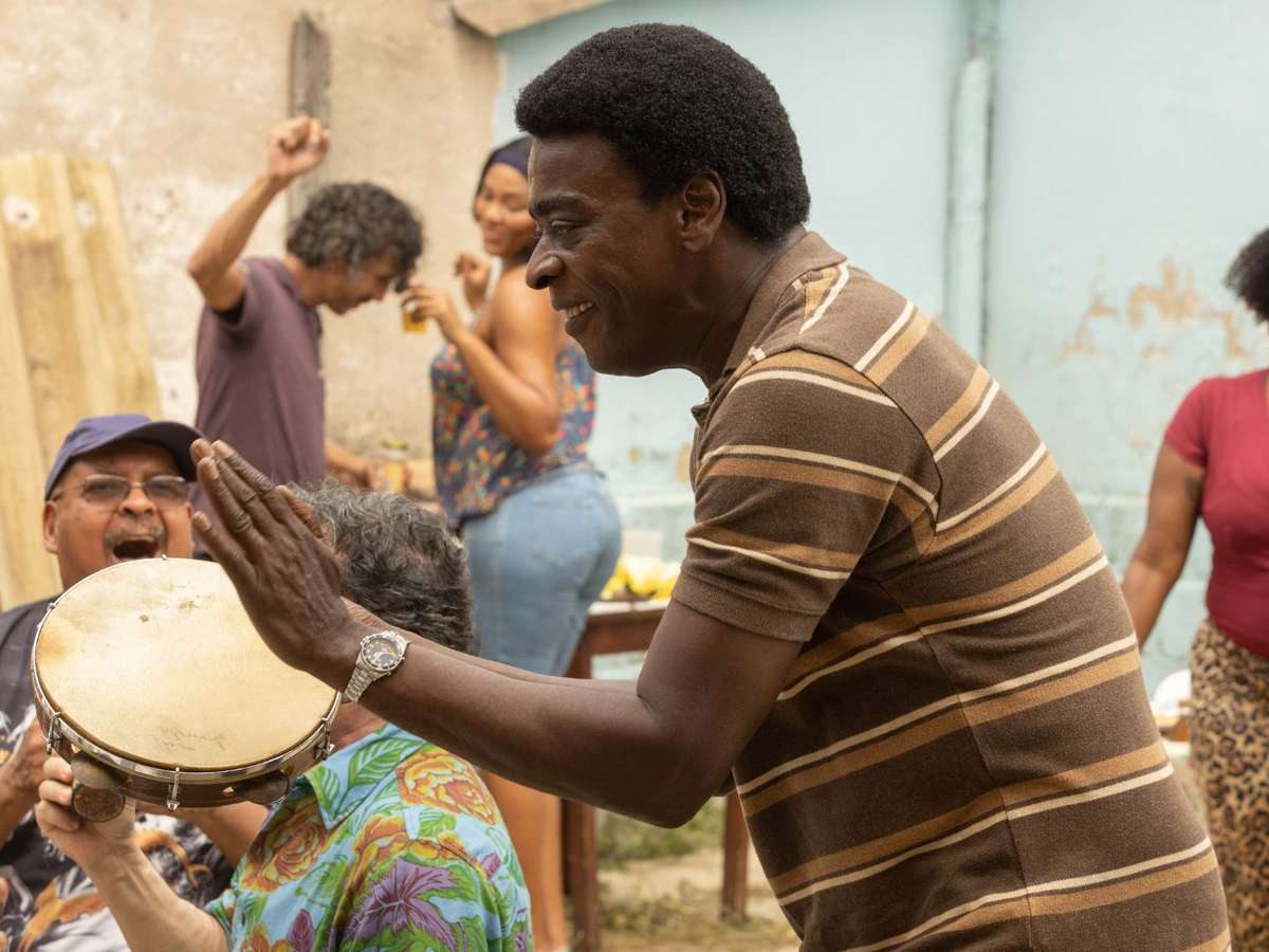 Seu Jorge: Tudo estava muito bem organizado pela Ana [Muylaert, diretora] e pela Lílis [Soares, diretora de fotografia]. Era uma área externa, com muita movimentação: crianças, grupo de pagode, churrasquinho. Tinha uma coreografia no set. Foi uma escolha bem pensada pela direção. Entrei na cena com tudo muito claro, as posições de câmera, as marcações. Isso facilitou demais. Eu só precisei me adaptar à estrutura que elas já tinham desenhado. Elas ensaiaram tudo antes, então ficou fácil entrar no clima, mesmo sendo uma cena com dois moods diferentes, a festa em si e o fim da festa.