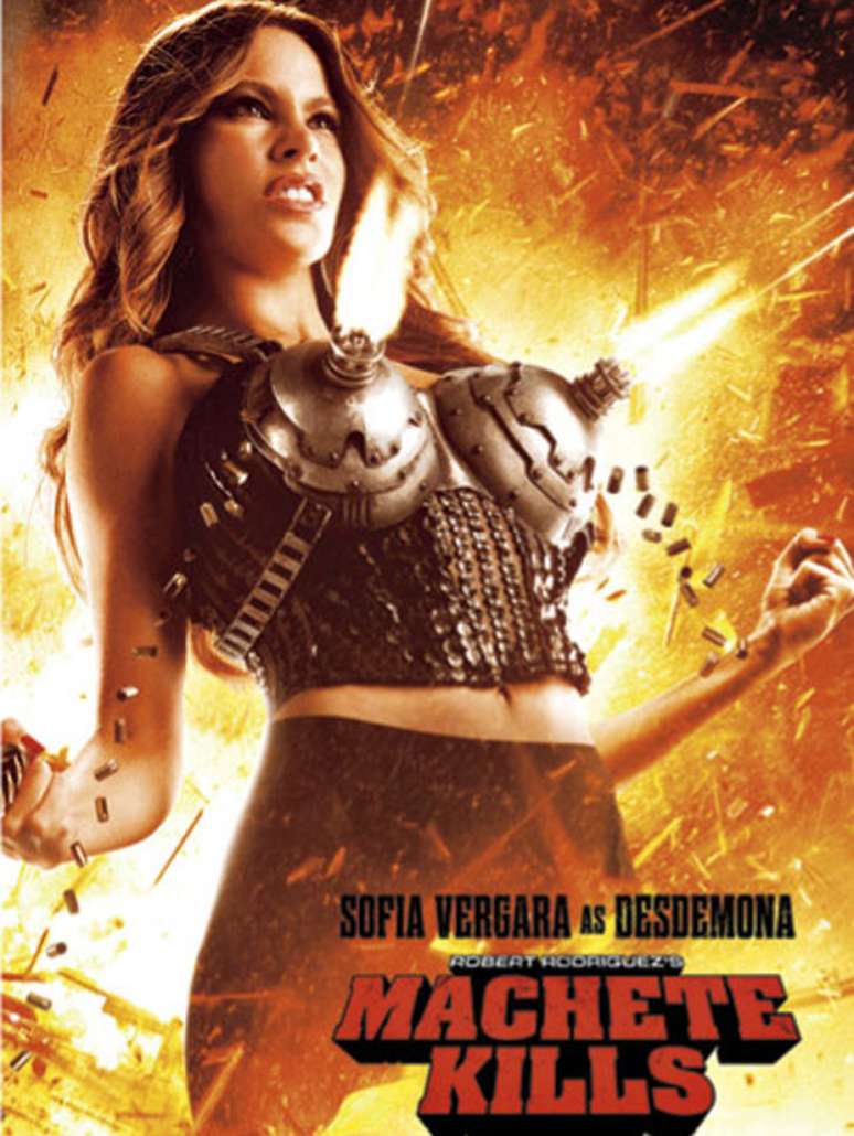 Usando um "sutiã metralhadora", a atriz colombiana Sofia Vergara aparece como destaque do novo cartaz de Machete Kills, que foi divulgado nesta quinta-feira (7). O filme, que tem estreia no Brasil prevista para setembro, marca a primeira participação de Sofia, de 40 anos, na trilogia dirigida pelo cineasta Robert Rodríguez.
