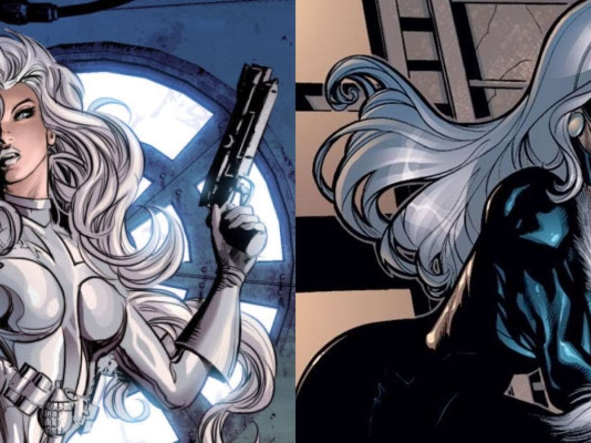 A Sabre de Prata (ou Silver Sable, no original) é uma caçadora de criminosos de guerra; ela apareceu pela primeira vez em junho de 1985, em uma edição de "O Espetacular Homem-Aranha". Já a Gata Negra (Black Cat) é o alter-ego de Felícia Hardy (que chegou a aparecer em O Espetacular Homem-Aranha 2 - A Ameaça de Electro, vivida por Felicity Jones). Ela é uma ladra profissional, hábil acrobata e artista marcial. Chegou a ter um relacionamento com Peter Parker nos quadrinhos.