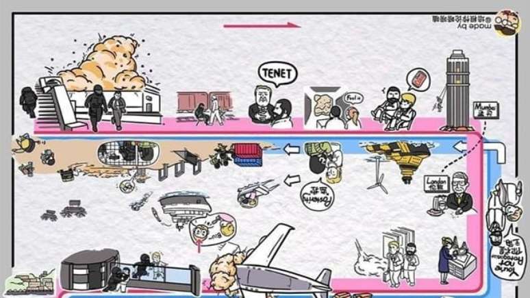 Uma fama um tanto injusta, porque Tenet realmente não é tão complexo (nem Amnésia ou A Origem), mas o suficiente para que tenham feito mapas de todo o filme para não perdermos um único segundo ou, se formos grandes fãs, para poder imprimir e pendurar na nossa sala. Será que você consegue entender? Tenha cuidado, porque não há nenhum detalhe que seja esquecido: