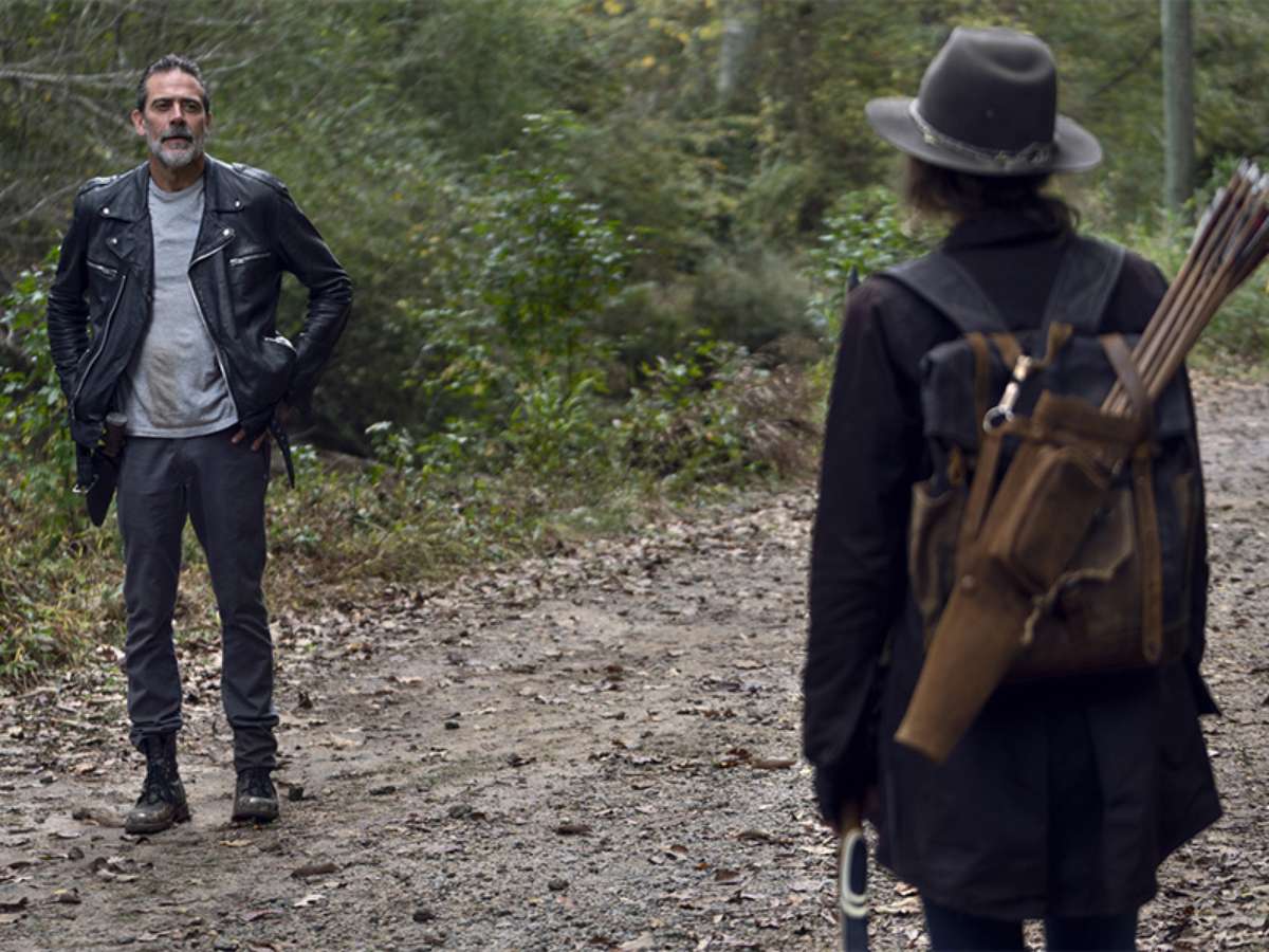 O canal pago americano AMC divulgou uma cena completa da volta de "The Walking Dead", que mostra o aguardado encontro entre Maggie (Lauren Cohan) e Negan (Jeffrey Dean Morgan). "Eu não escapei, se é isso que está pensando", diz o ex-vilão, que deveria estar preso pela morte de Glenn (Steven Yeun), marido de Maggie, entre muitos outros personagens. A troca de olhares entre os dois é cheia de tensão e significados que serão explorados nos novos episódios.