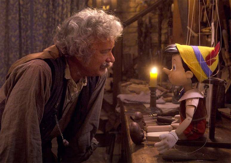 A plataforma Disney+ divulgou a primeira imagem oficial do remake live-action de "Pinóquio" em suas redes sociais. A imagem mostra o ator Tom Hanks ("Forrest Gump") no papel de Gepeto diante do boneco de madeira, que recria em detalhes o personagem-título do desenho animado clássico de 1940.