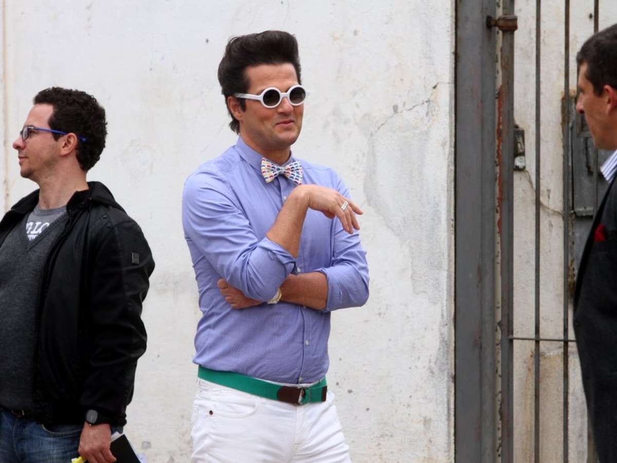 Marcelo Serado e Milhem Cortaz foram vistos nas ruas de São Paulo durante a gravação de Crô, filme que dará continuidade ao personagem criado na novela Fina Estampa