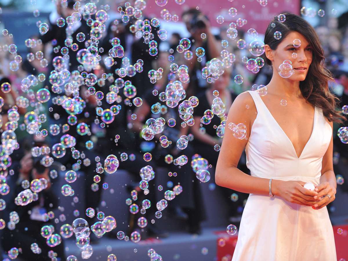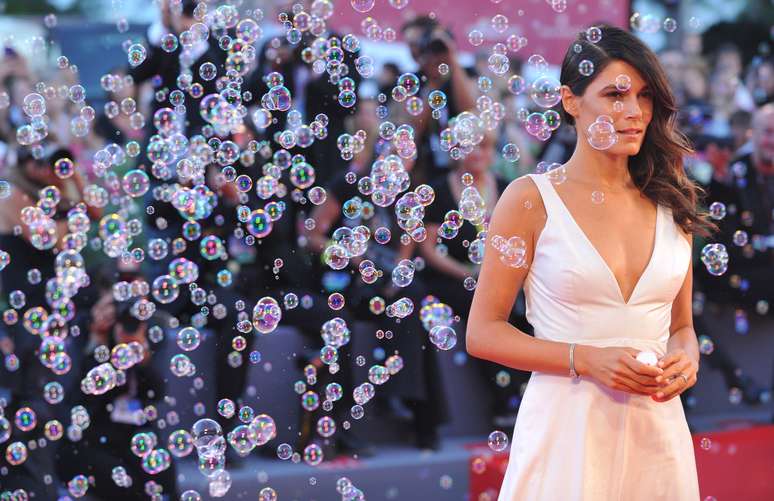 Valeria Solarino protagonizou um momento inusitado ao passar pelo tapete vermelho do Festival de Veneza, na Itália, na quarta-feira (4). Com um elegante vestido branco, a atriz fez bolhas de sabão ao chegar para a exibição do filme 'L'Intrepido'