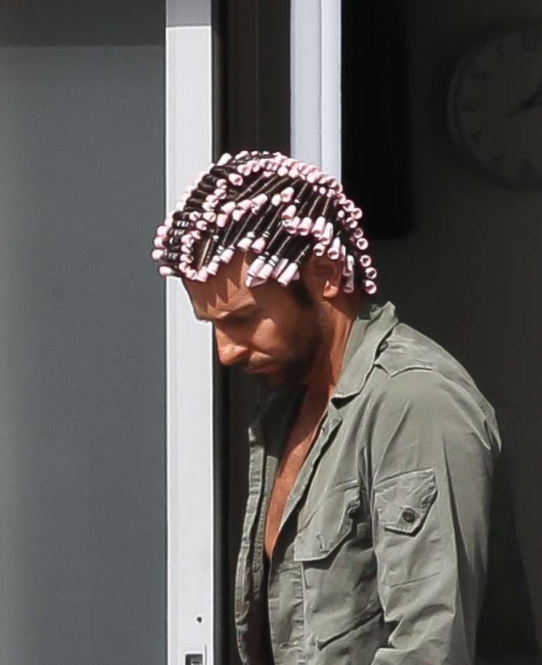 Veja fotos de Bradley Cooper usando bobes em set de filmagens