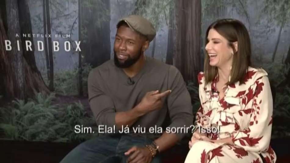 Entre Telas Sandra Bullock se diverte durante passagem pelo Brasil Exibir comentários Compartilhar Acompanhe a entrevista do Cineclick com Sandra Bullock e Trevante Rhodes para divulgação de Bird Box, filme da Netflix. Cineclick Publicidade