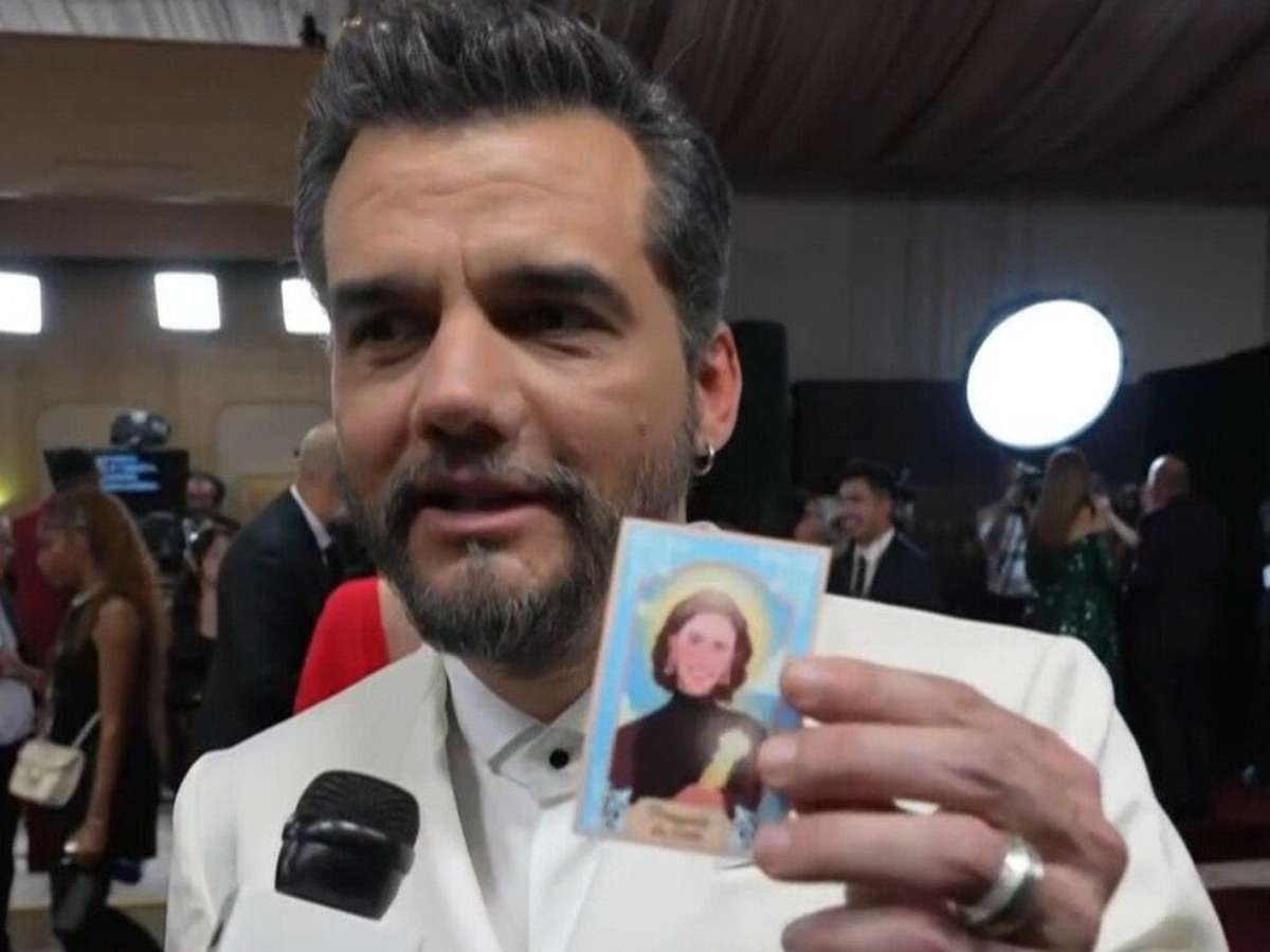Um detalhe inesperado roubou a cena no tapete vermelho do Globo de Ouro, em Los Angeles, na noite deste domingo, 11. Wagner Moura e outros integrantes da equipe de O Agente Secreto chegaram ao evento carregando um santinho, daqueles tradicionais panfletos de santos católicos, mas com um toque bem brasileiro: a imagem de Fernanda Torres.