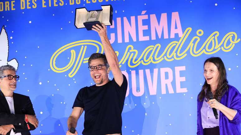 Juliette Binoche surpreendeu o brasileiro durante exibição de O Agente Secreto no festival Cinéma Paradiso, em Paris. Ator dedicou o troféu à cultura brasileira e cantou João Gilberto no palco