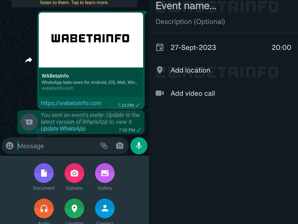 A novidade está na versão 2.23.21.12 do WhatsApp Beta para Android, mas continua indisponível para testadores. A criação de eventos está escondida no menu de anexos do mensageiro, ao lado das enquetes.