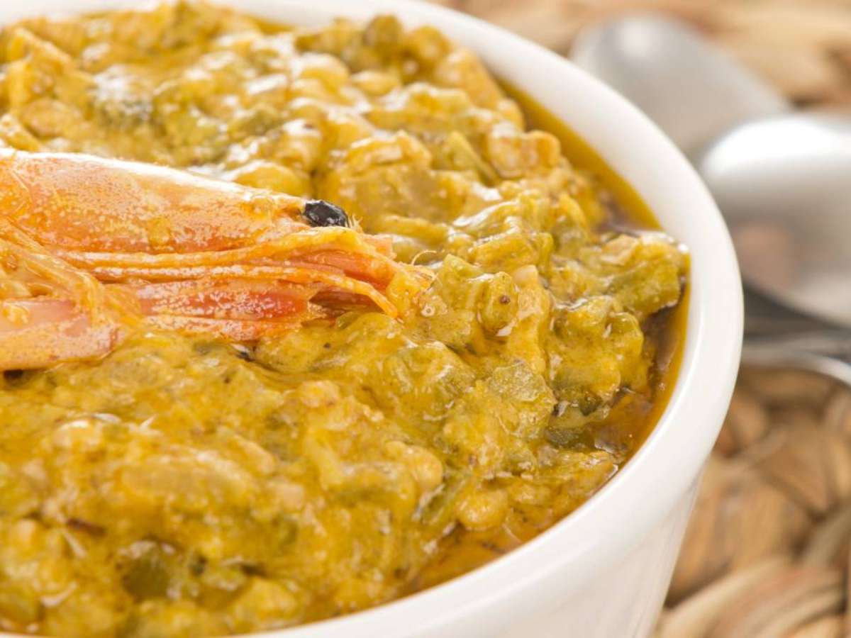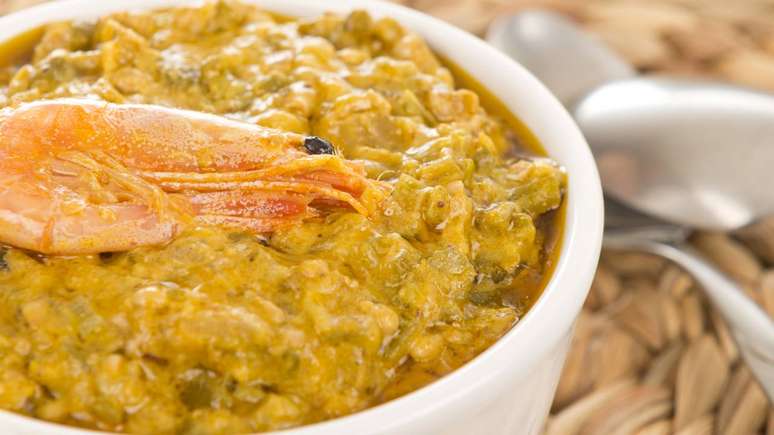 - Leva azeite de dendê, camarão seco e temperos;