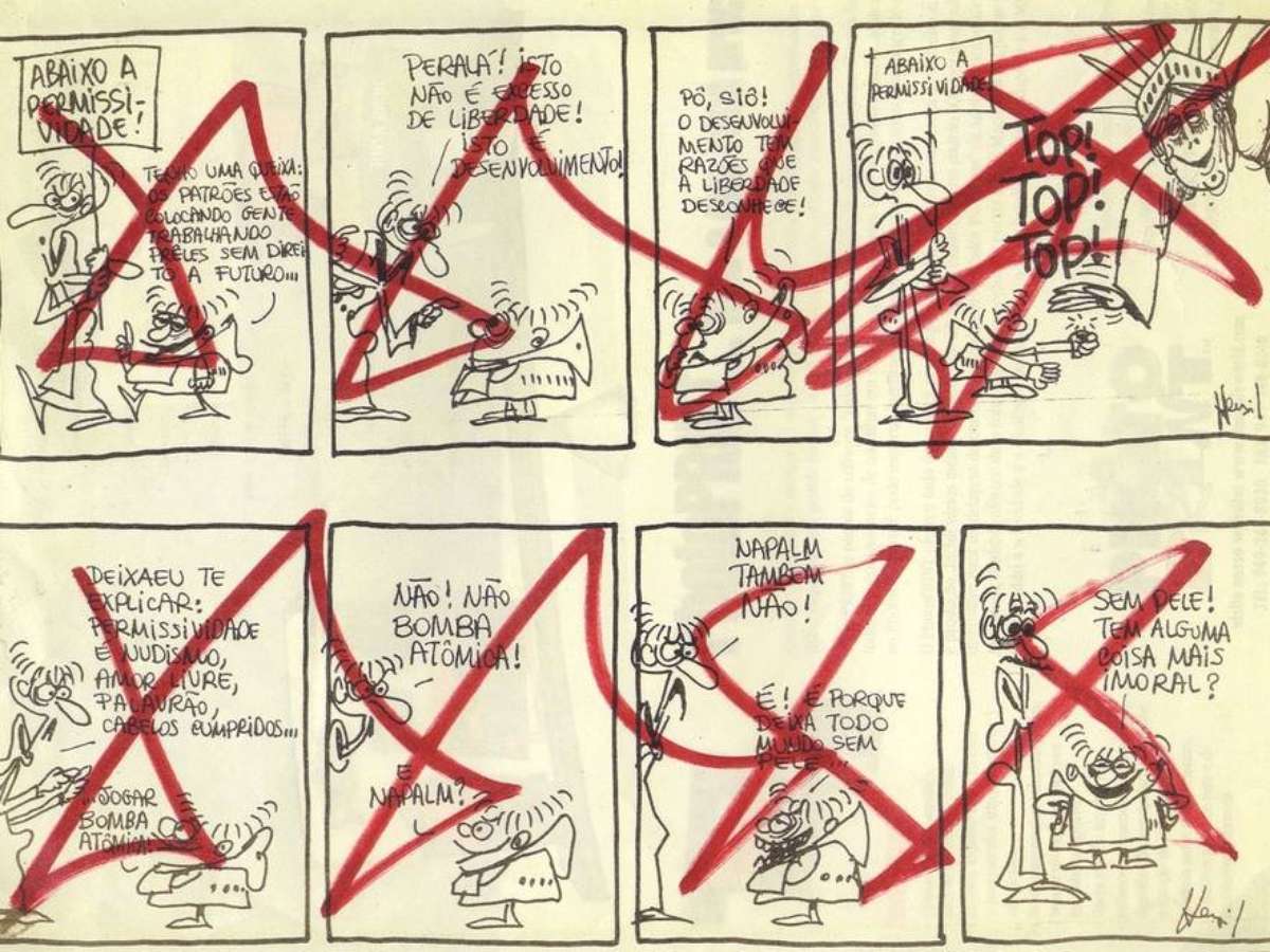 O tabloide chamou a atenção dos militares ao desafiar o conservadorismo. Na edição nº 22, a famosa entrevista com Leila Diniz, musa do prazer na década de 1960, foi publicada com asteriscos que substituíam os inúmeros palavrões que preenchiam suas falas. Foi quando a ditadura passou a acompanhar a publicação mais de perto - a partir do 39º número do Pasquim, a censura fazia seu trabalho diretamente na redação.