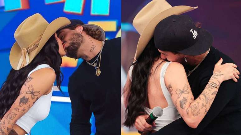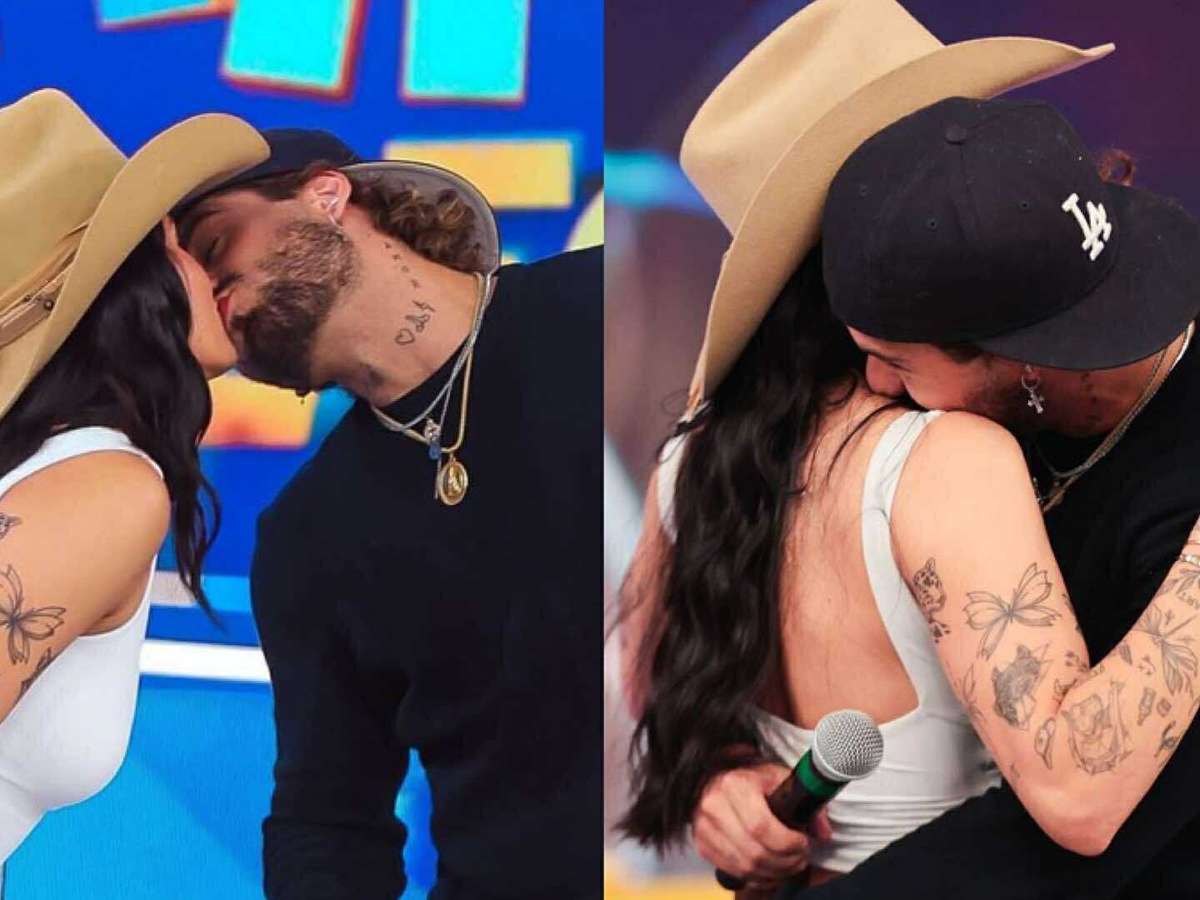 Cantor Zé Felipe beija Ana Castela na frente de ex durante gravação do programa 'Passa ou Repassa', no SBT