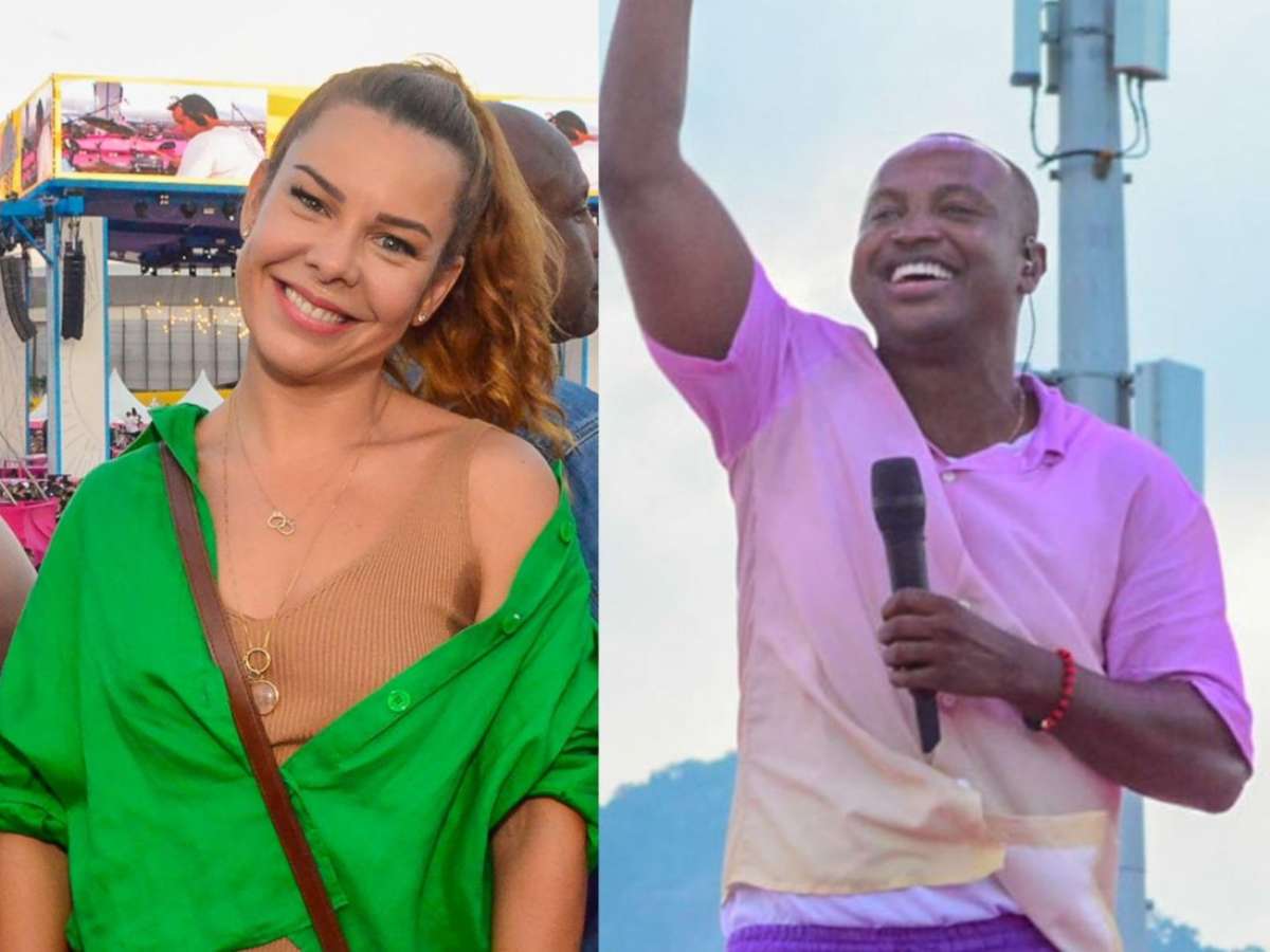 Fernanda Souza foi surpreendida pela reação da plateia ao vê-la pelo telão no show do ex-marido, Thiaguinho. Veja os vídeos e a interação da atriz com a atual namorada do cantor!