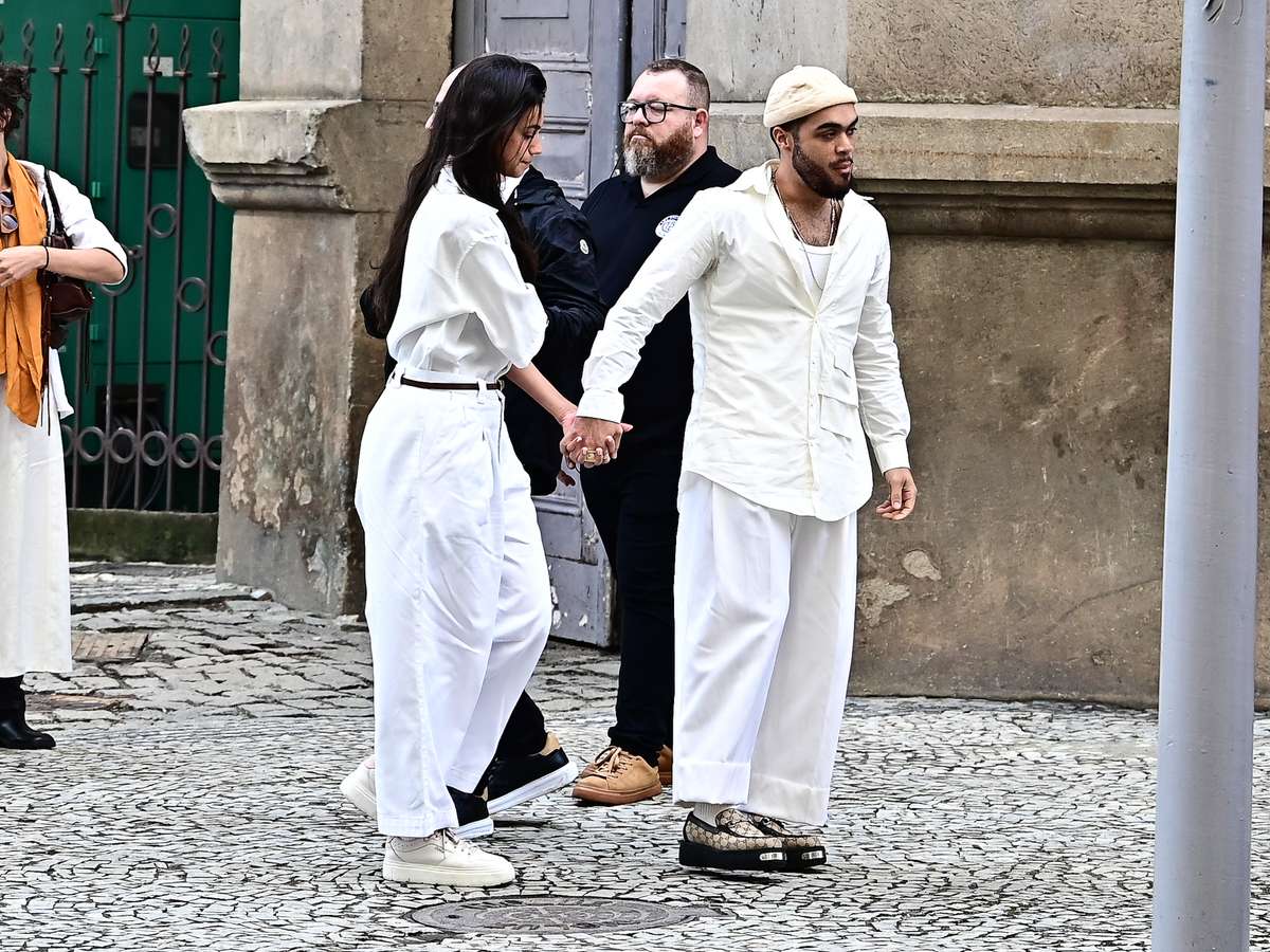 Amigos de Francisco, Alice Wegmann e LG Linzmeyer, usam branco em apoio ao músico