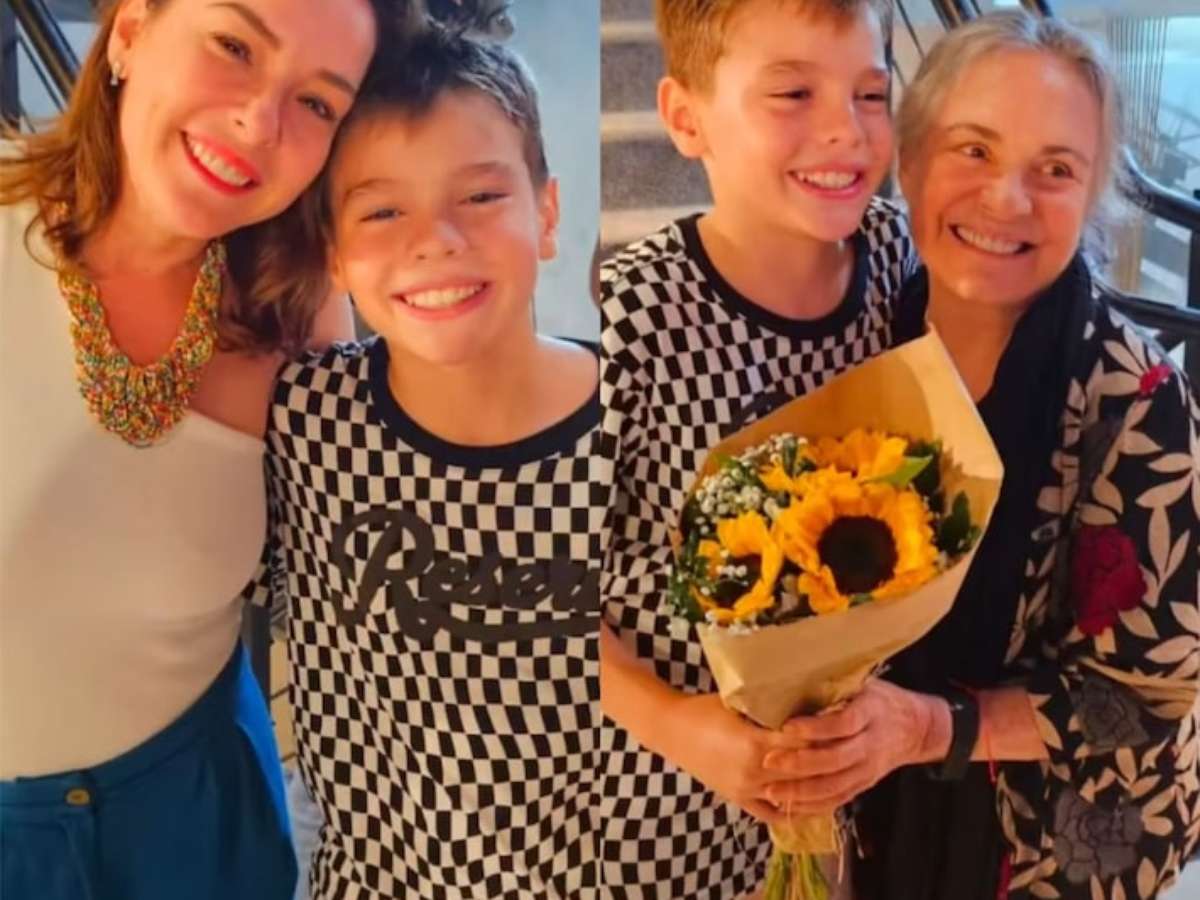 Filho de Regiane Alves e neto de Regina Duarte, João Gabriel faz sua estreia no teatro; veja vídeo