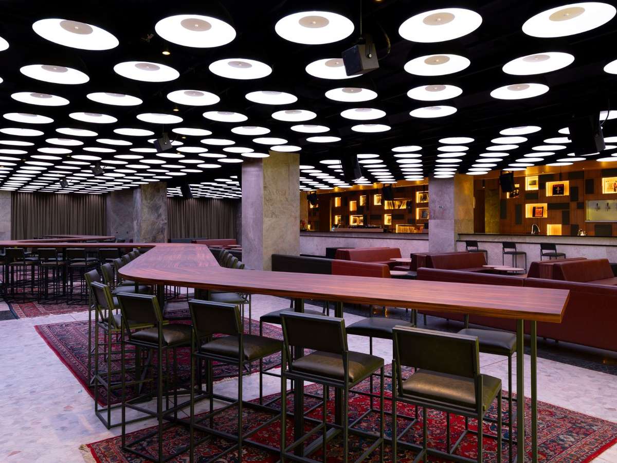 A verdadeira revolução está nas "bolhas de estéreo": mais de 20 caixas de som distribuídas estrategicamente pelo salão, criando três linhas sonoras que garantem a mesma qualidade acústica em qualquer ponto do ambiente, ou seja, em qualquer lugar do espaço, você consegue conversar e ouvir a música com clareza e no mesmo volume. E se ficou na dúvida sobre o som estar na altura adequada? Não se preocupe, você poderá conferir isso num decibelímetro.