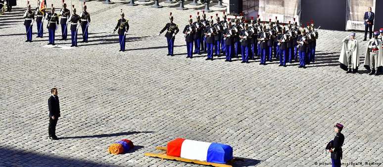 Cantor, compositor e ator é celebrado com honrarias por autoridades francesas e armênias durante cerimônia em Paris. "Na França, os poetas nunca morrem", afirma presidente Emmanuel Macron.A França prestou nesta sexta-feira (05/10) homenagens ao cantor, compositor e ator Charles Aznavour, morto no início desta semana, com honrarias normalmente dedicadas a heróis nacionais.