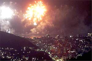 - Fogos de artifício iluminam a Baía de Guanabara no Rio de Janeiro.