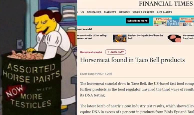 5. Carne de cavalo era um “ingrediente” secreto de um restaurante nos Simpsons, em 1994, e tornou-se um escândalo com uma grande rede de restaurantes 19 anos mais tarde.