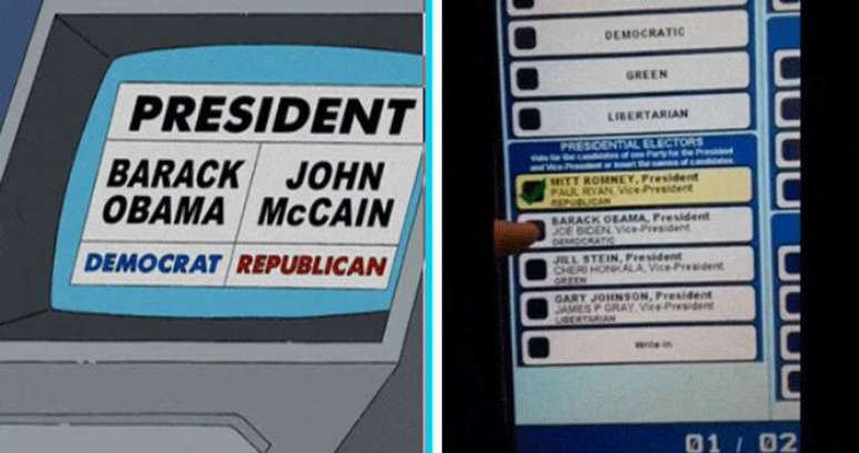 2. Em 2008, a máquina de votação mudava o voto de Homer: isso virou escândalo real em 2012.