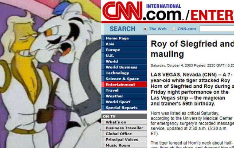 11. Em episódio de 1993, um tigre da dupla Siegfried & Roy ataca os artistas. Incrivelmente, o fato se concretizou exatamente 10 anos mais tarde.
