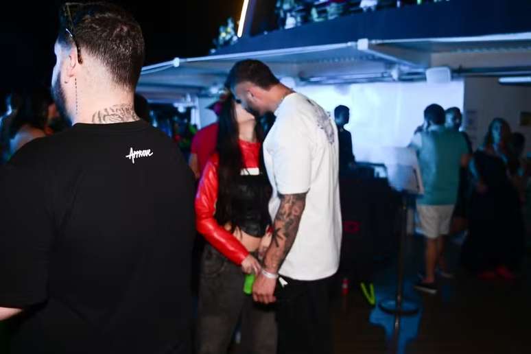 O ex-BBB esteve acompanhado de outra ex-reality, a DJ Victoria Macan, do 'Brincando com Fogo'. Em registros exibidos na imprensa é possível ver os dois em clima de intimidade, de mãos dadas e também trocando beijos e carícias durante a apresentação.