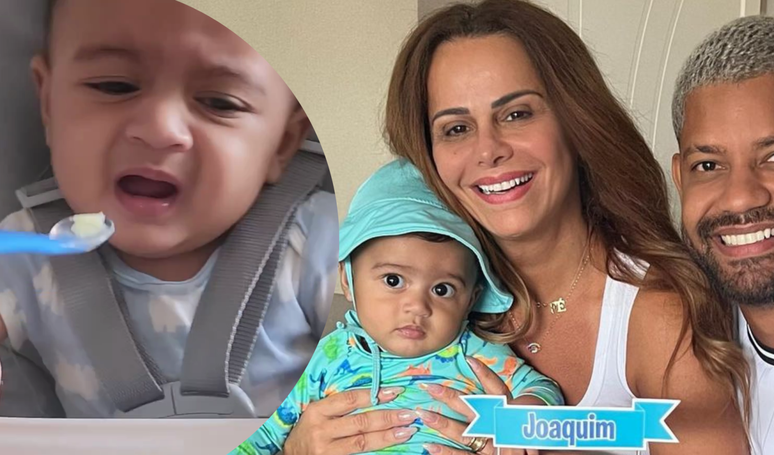 Joaquim, no entanto, parece não ter gostado muito da nova experiência. O bebê, que foi amamentado por Viviane nos primeiros meses, fez caras e bocas enquanto experimentava os alimentos. "Primeira vez da papinha! Ele amou, né, papai Guilherme? Só que não (risos)", brincou a atriz.