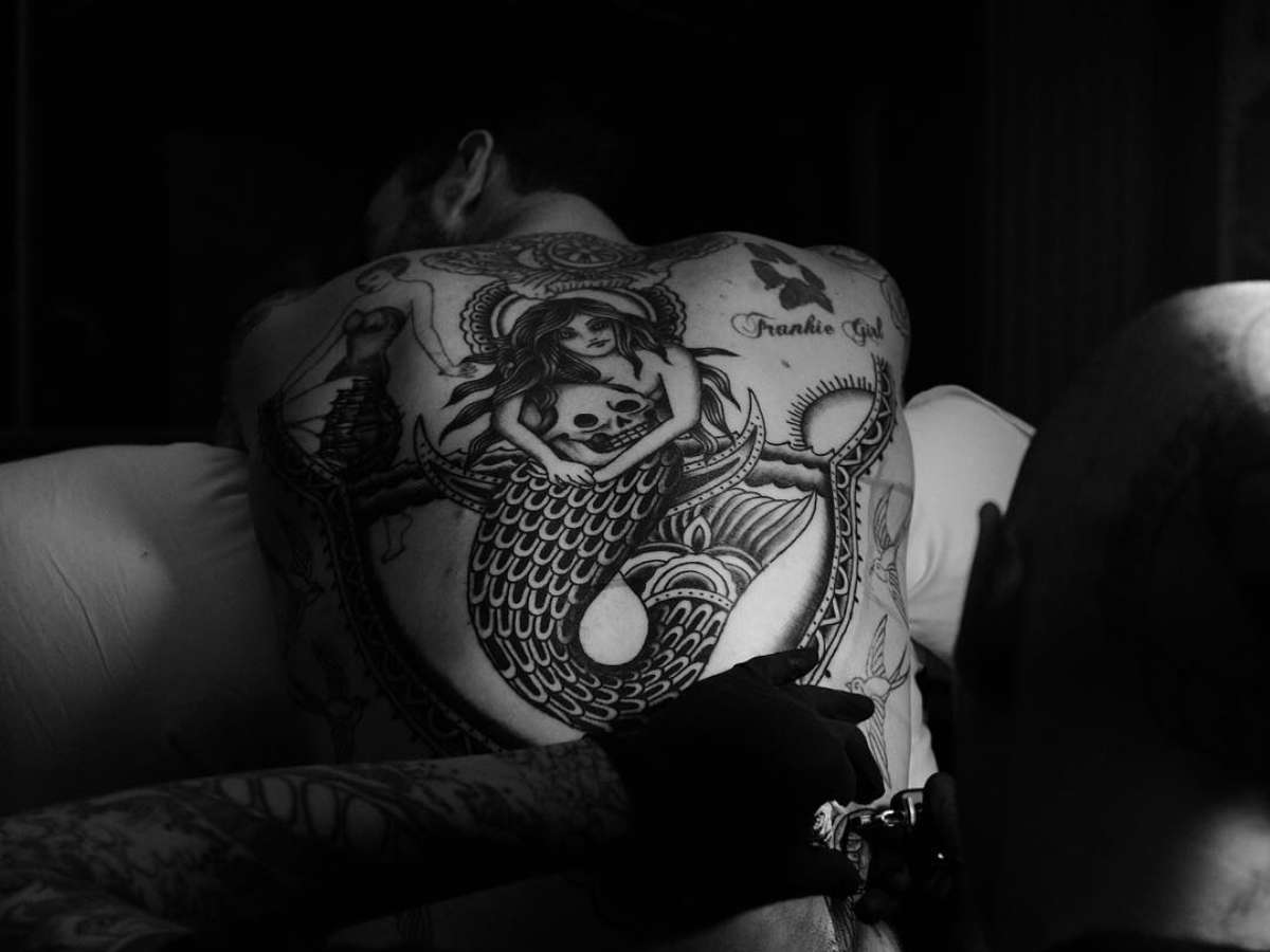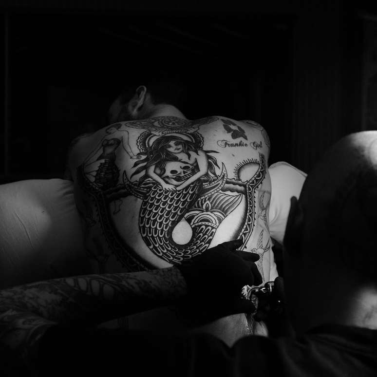 O cantor compartilhou a imagem de uma sereia desenhada em suas costas, na rede social