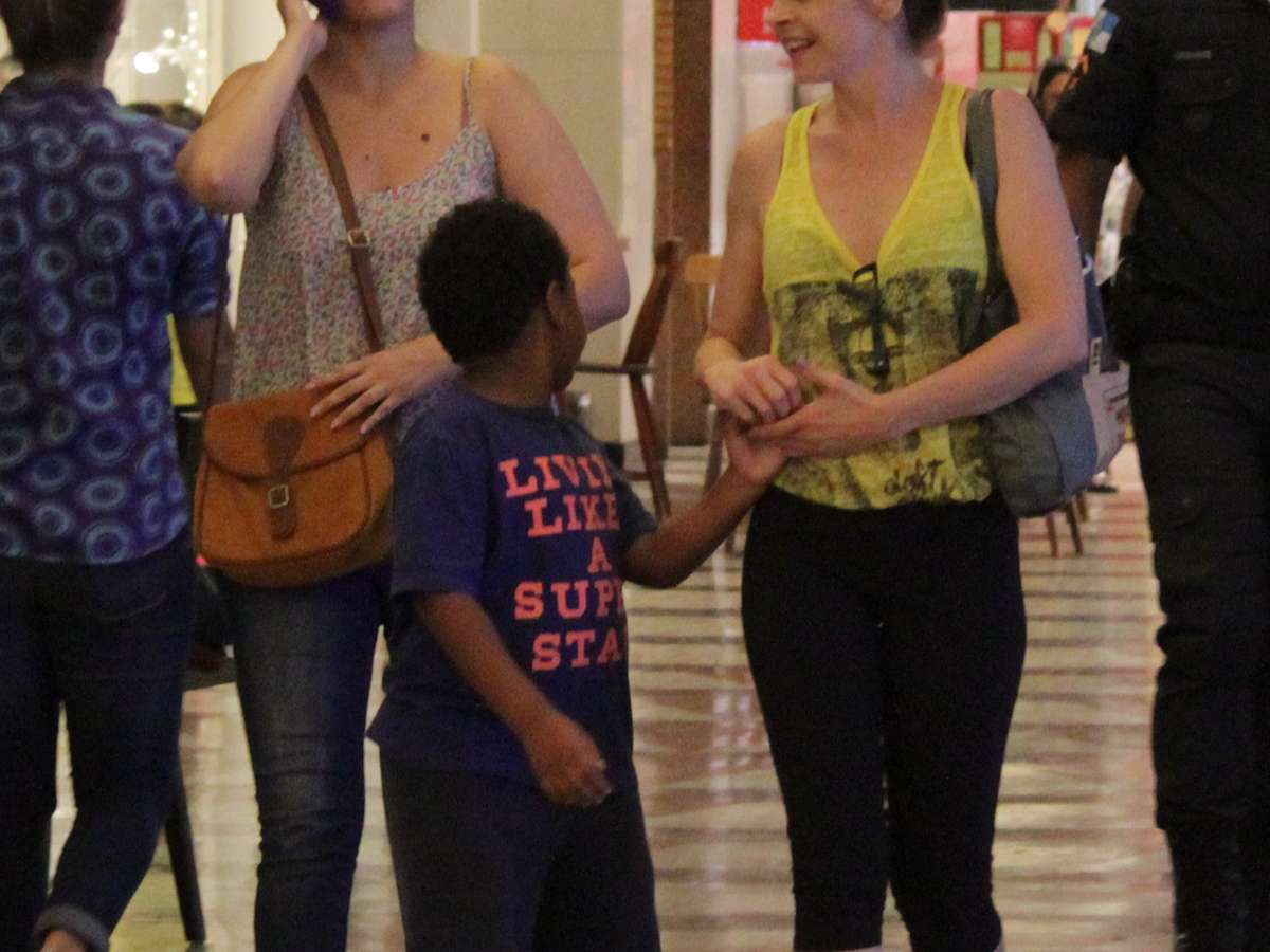 A atriz, que interpretava Cora no folhetim global, passeou ao lado do filho e de uma amiga com um visual descontraído, composto por calça legging, regata e tênis.