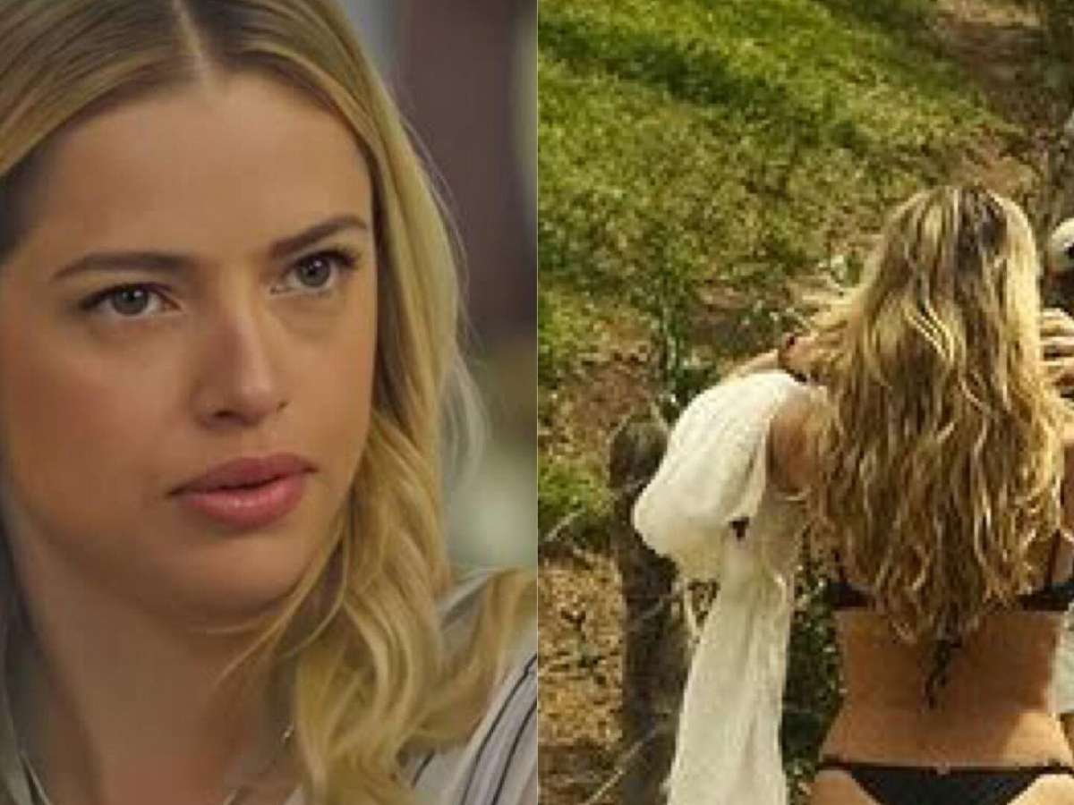 Atriz Agatha Moreira, de 'Terra e Paixão', usa biquíni fio-dental em dia na cachoeira com o namorado, o ator Rodrigo Simas
