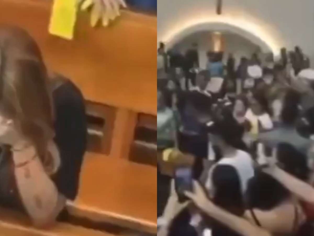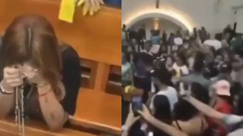 Ajoelhada em oração na Igreja, Virginia é cercada por mutirão e vídeo viraliza: 'Bizarro'