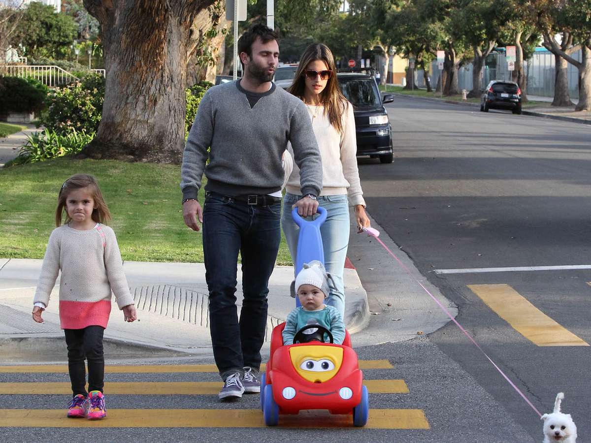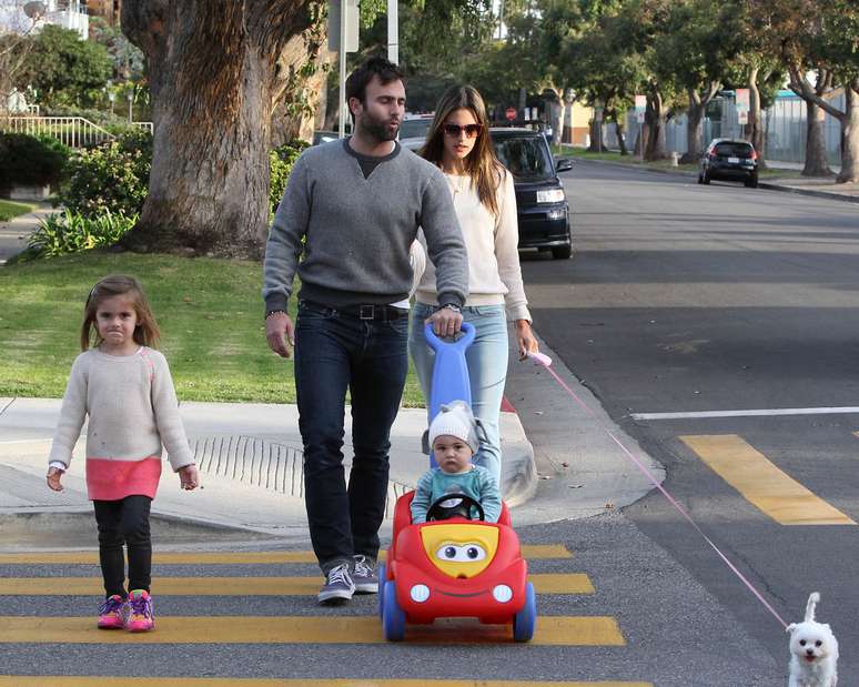 Ale Ambrósio passeia com os filhos Anja e Noah nos EUA