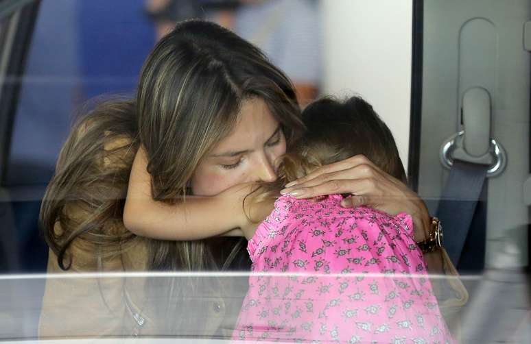 Alessandra Ambrósio é pega no aeroporto por marido e filha