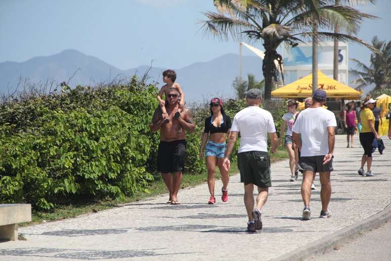 Alexandre Frota fez um passeio em família na manhã deste domingo (6). Com a mulher Fabiana, e o enteado Enzo, ele caminhou pela orla da Barra da Tijuca, no Rio de Janeiro. Frota fez o passeio ficar para divertido para Enzo e o levou nos ombros.