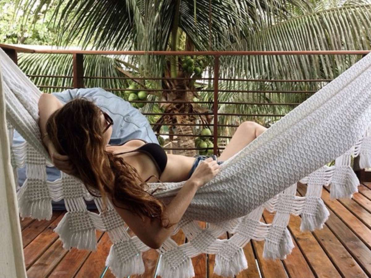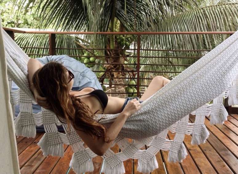 Na foto, ela aparece de biquíni deitada em uma rede. "E a Teju continua linda", escreveu na legenda. Teju-açu é o nome da pousada em que a atriz e outros famosos, como Bruno Gagliasso, costumam se hospedar na ilha.