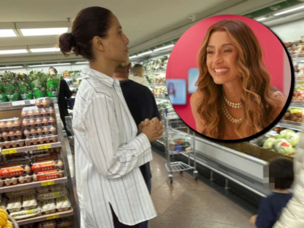 De look casual e cabelos presos, a artista circulou tranquilamente pelos corredores. Abasteceu o carrinho com muitos legumes, frutas e sopas.