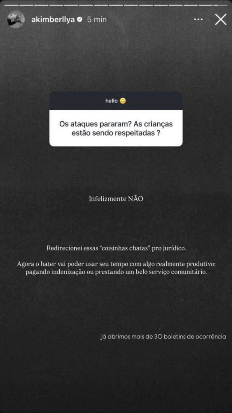 "Infelizmente, não. Redirecionei essas 'coisinhas chatas' pro jurídico. Agora o hater vai poder usar seu tempo com algo realmente produtivo: pagando indenização ou prestando um belo serviço comunitário. Já abrimos mais de 30 boletins de ocorrência", disse Amanda.
