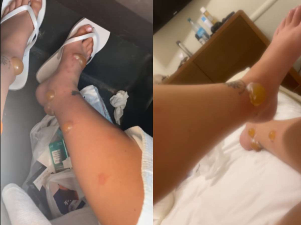 Durante a lua de mel, uma influenciadora digital norte-americana conhecida como Zoe sofreu uma reação severa após ser picada por insetos. As lesões causaram bolhas cheias de pus nos pés e nas pernas, provocando dores intensas que dificultaram sua locomoção.