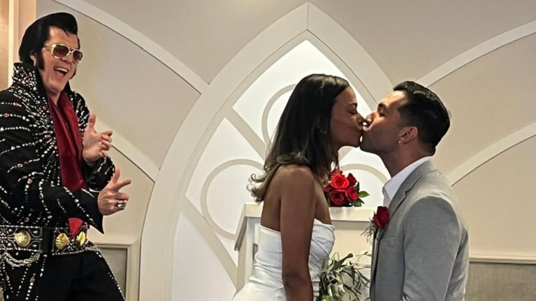 A cerimônia aconteceu em um estilo típico "Las Vegas", com direito a limusine, presença de um cover de Elvis Presley e apenas familiares próximos.