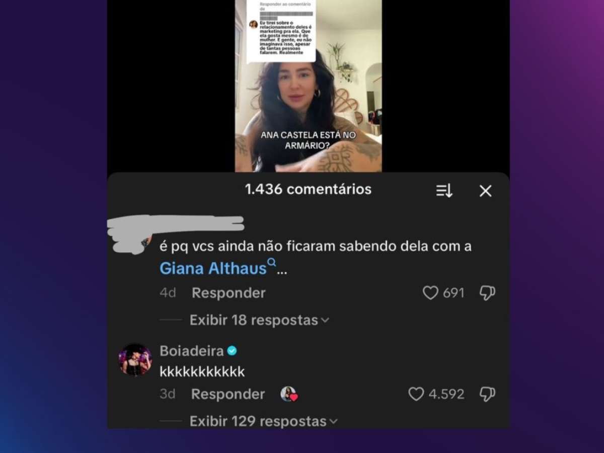 Sem se alongar no assunto, Ana Castela respondeu à publicação com uma risada: "kkkkkkkkkkkk", escreveu nos comentários, deixando claro que não levou a previsão a sério. A interação da boiadeira viralizou e fez o vídeo ganhar ainda mais visibilidade antes de ser retirado da plataforma por denúncias de usuários.