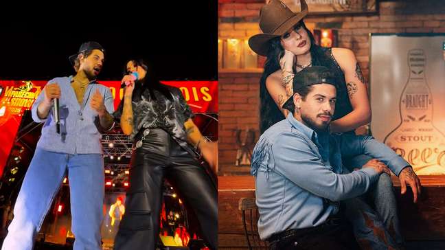 Nos registros compartilhados pelo casal, Zé Felipe está usando um moletom com uma arte personalizada de Ana Castela, com o nome e fotos da cantora. Além estarem vivendo um relacionamento, os dois também têm uma parceria musical e lançaram juntos o clipe da música "Sua Boca Mente".