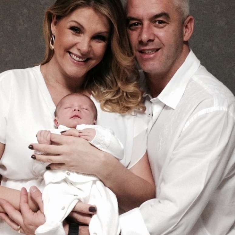 Ana Hickmann mostrou pela primeira vez o rosto do filho, Alexandre, que nasceu no dia 7 de março. Em seu Instagram, na noite de domingo (16), ela publicou uma foto onde aparece segurando o filho, ao lado do marido. Na imagem o menininho está segurando o dedo da mãe. Na foto Alexandre com o pai e a tia, Isabel