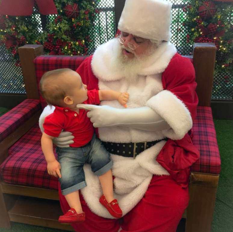 Com apenas oito meses e vestido com camisa e sapatos vermelhos, o único filho da apresentadora pareceu gostar do programa. "O Papai Noel é um cara muito legal. Adorei conversar com ele. Aproveitei também para fazer o meu pedido de Natal", escreveu Ana na legenda.