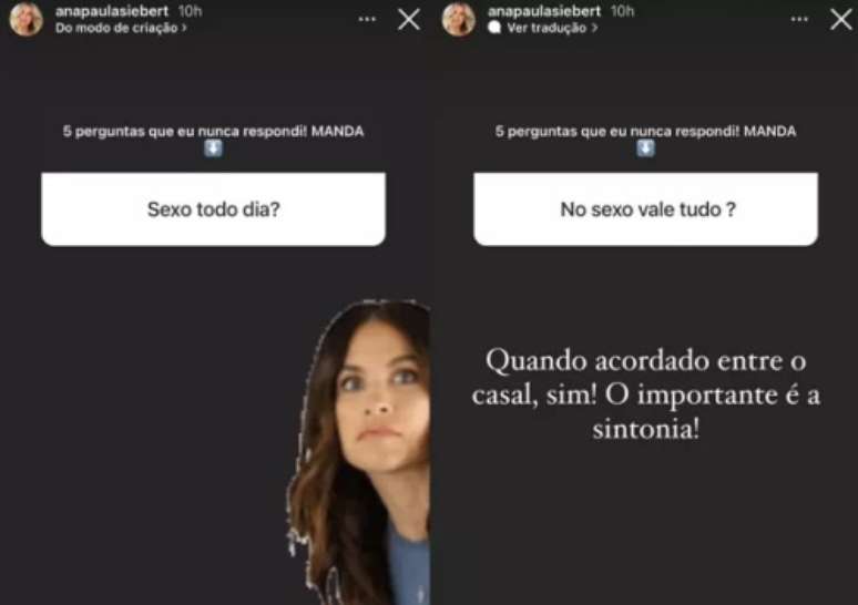 Ana Paula Siebert abriu uma caixa de perguntas no Stories do Instagram para responder algumas curiosidades sobre sua vida.