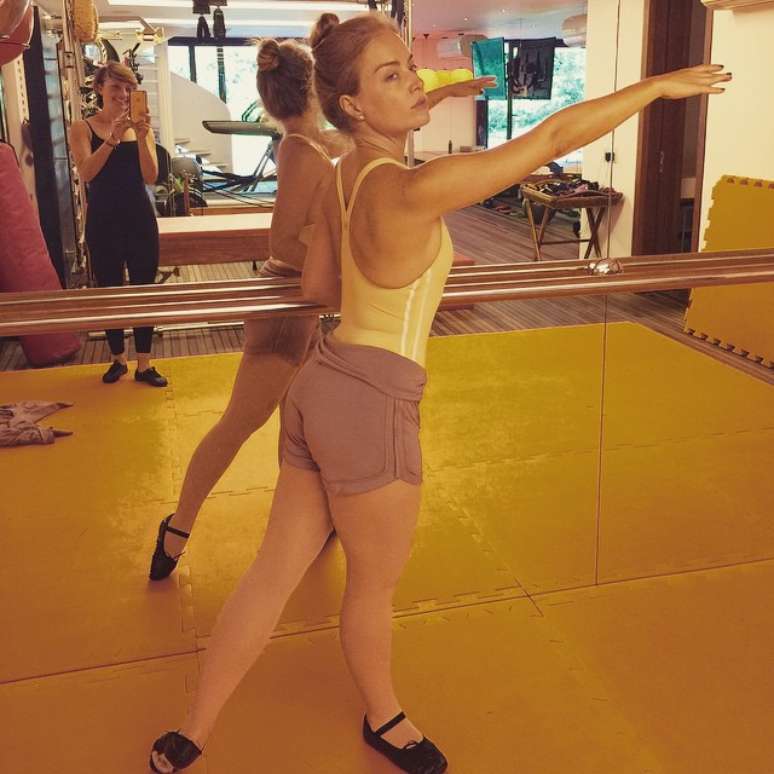 De sapatilha, Angélica resolveu se arriscar a um novo tipo de dança e registrou o momento no Instagram nesta quarta-feira (6). “Olha a cara de bailarina..., kkkkk primeira aula da vida!!!! Morri!”, escreveu ela se referindo aos primeiros passos no balé.